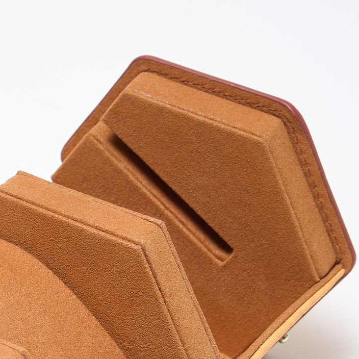 内装には、柔らか く上質な韓国製スエードを採用。時計を傷から守りながら、ケース全体に上質で落ち着いた印象を与えます。