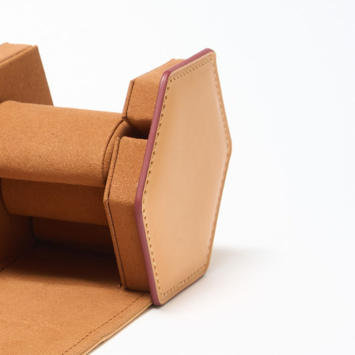 旅行時はバッグに入れて携帯ケースとして、自宅では棚の上に置いてディスプレイケースとして。六角形の安定したフォルムにより、最大3本の時計を美しく並べて展示できます。